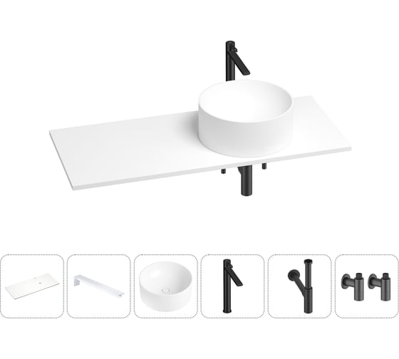 Раковина-столешница с чашей справа Wellsee Le.charme в наборе 6 в 1: раковина, столешница 120 см, кронштейны, смеситель, сифон, вентили (цвет набора матовый черный) 202002989