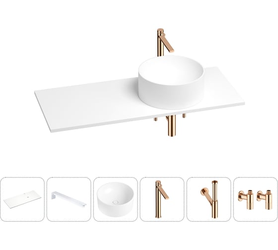 Раковина-столешница с чашей справа Wellsee Le.charme в наборе 6 в 1: раковина, столешница 120 см, кронштейны, смеситель, сифон, вентили (цвет набора розовое золото) 202002991