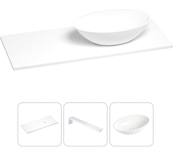 Раковина-столешница с чашей справа Wellsee Le.huit.mars в наборе 3 в 1: раковина из камня с подвесной столешницей 100 см, цвет матовый белый, с кронштейнами для подвесного монтажа 202003817