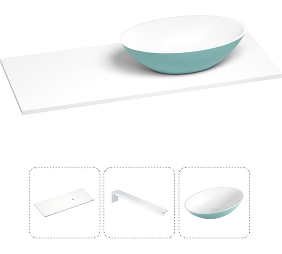 Сопутствующие товары для раковины-столешницы Wellsee Le.huit.mars с чашей справа цвет матовый бирюзовый/матовый белый