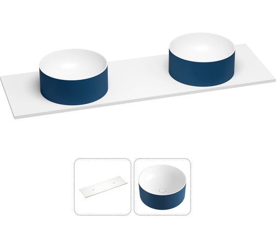 Раковина-столешница с двумя чашами Wellsee Le.charme в наборе 2 в 1: раковины из камня с подвесной/мебельной столешницей 140 см (цвет матовый темно-синий/матовый белый) 214704032
