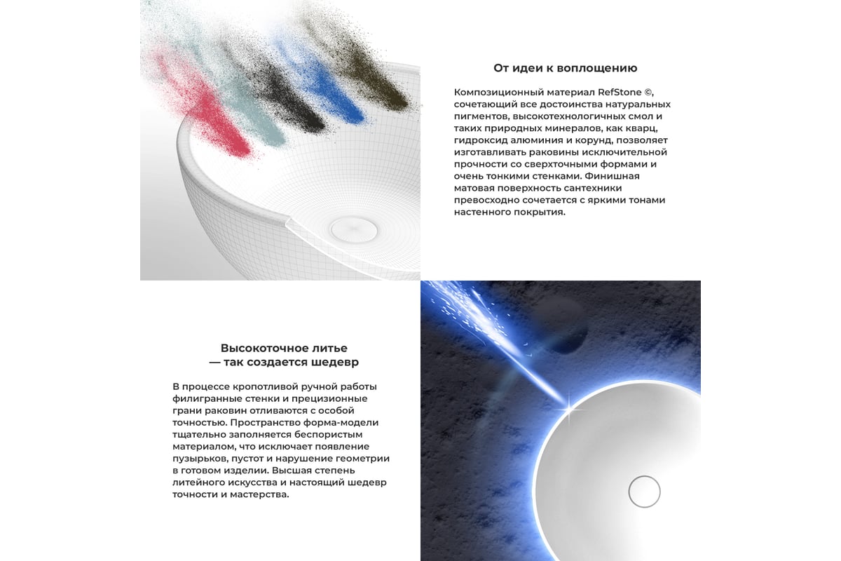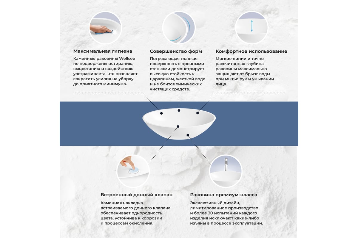 - Раковины произведенны по передовой технологии Solid Surface из искусственного камня