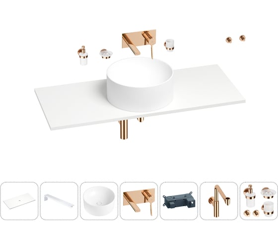 Раковина-столешница Wellsee Le.charme в наборе 10 в 1: каменная раковина со столешницей 100 см, кронштейны, смеситель, сифон, аксессуары (цвет набора розовое золото) 202004958