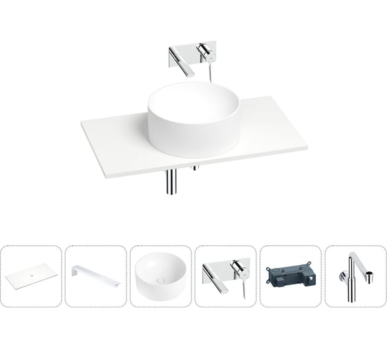 Раковина-столешница Wellsee Le.charme в наборе 6 в 1: каменная раковина со столешницей 90 см, кронштейны для подвесного монтажа, смеситель, сифон (цвет набора хром) 202004565