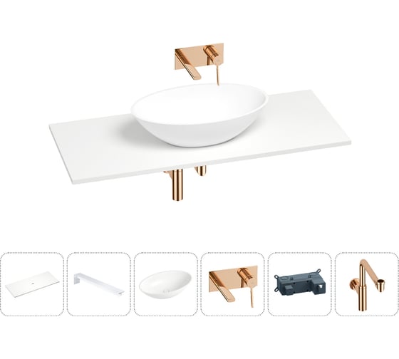 Раковина-столешница Wellsee Le.huit.mars в наборе 6 в 1: каменная раковина со столешницей 120 см, кронштейны для подвесного монтажа, смеситель, сифон (цвет набора розовое золото) 202004373