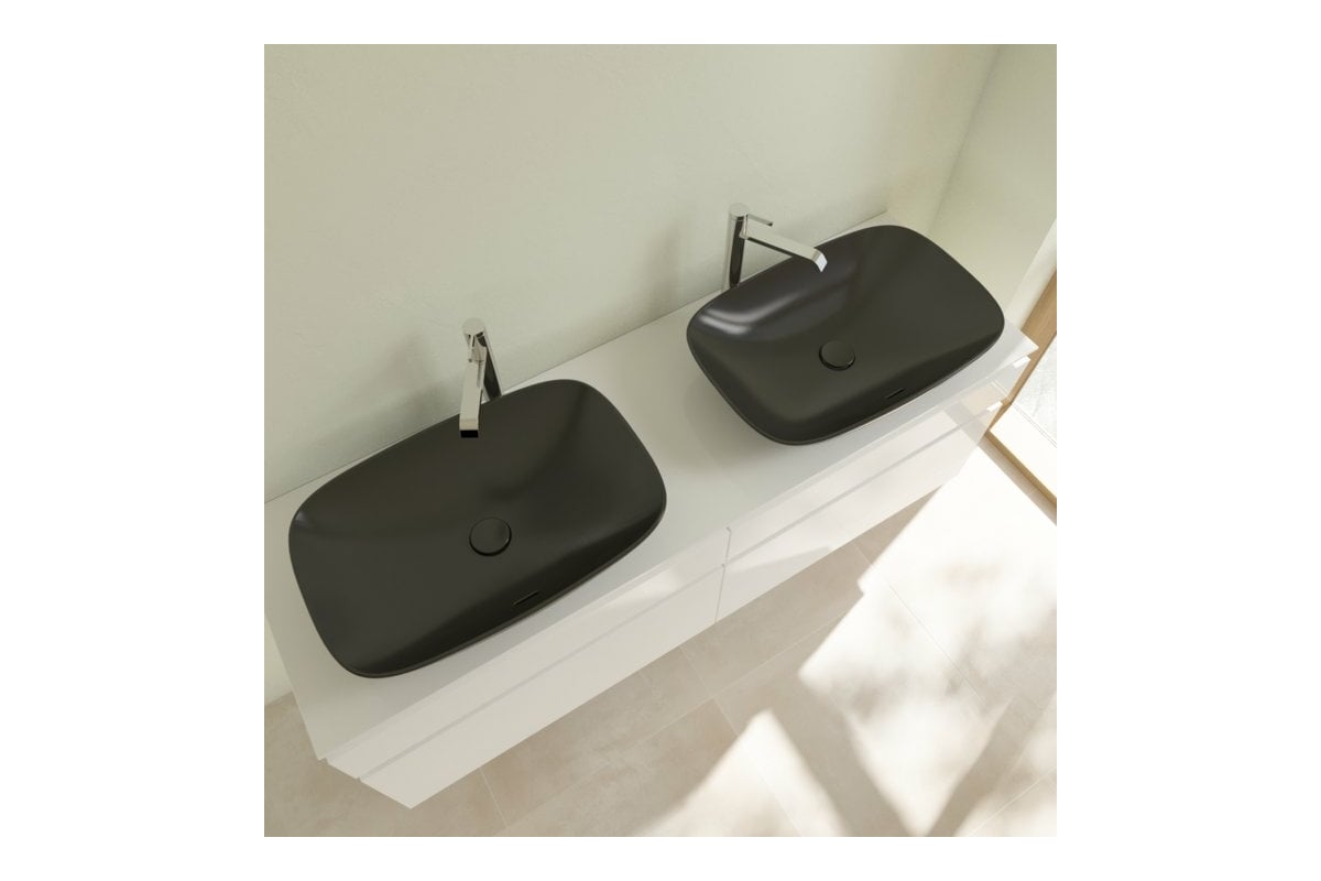 Сочетается с различными материалами от дерева до мрамора, а также со стандартными и настенными системами слива.