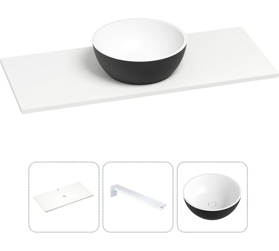 Раковина Wellsee La.lune в наборе 3 в 1: подвесная раковина-столешница из камня 100 см (матовый черный/матовый белый цвет), с кронштейнами для подвесного монтажа 202005589
