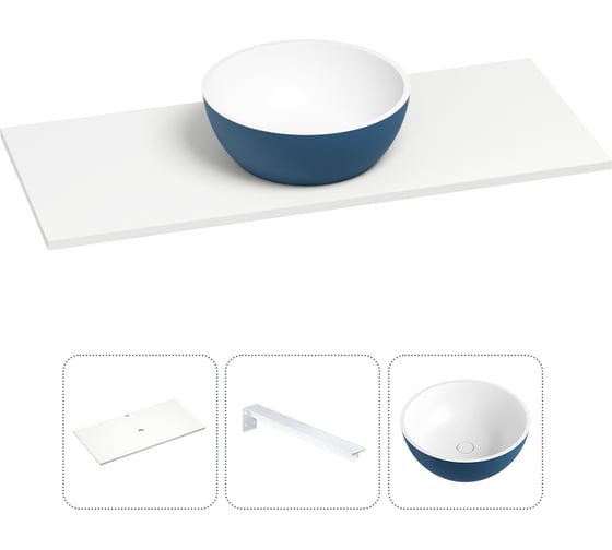 Раковина Wellsee La.lune в наборе 3 в 1: подвесная раковина-столешница из камня 100 см (матовый темно-синий/матовый белый цвет), с кронштейнами для подвесного монтажа 202005623
