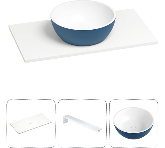 Раковина Wellsee La.lune в наборе 3 в 1: подвесная раковина-столешница из камня 80 см (матовый темно-синий/матовый белый цвет), с кронштейнами для подвесного монтажа 202007161