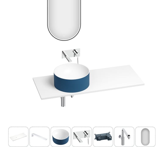 Раковина Wellsee Le.charme набор 7 в 1: раковина из камня с подвесной столешницей 100 см (цвет матовый темно-синий/матовый белый), кронштейны, смеситель, сифон, зеркало 202008156