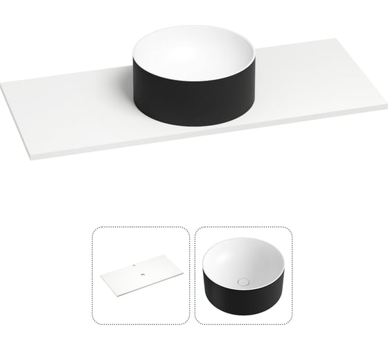 Раковина Wellsee Le.charme в наборе 2 в 1: подвесная/мебельная раковина-столешница из камня 100 см (матовый черный/матовый белый цвет), без кронштейнов для подвесного монтажа 214702003