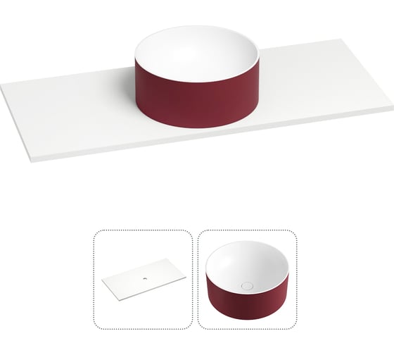 Раковина Wellsee Le.charme в наборе 2 в 1: подвесная/мебельная раковина-столешница из камня 100 см (матовый пурпурно-красный/матовый белый цвет), без кронштейнов для подвесного монтажа 214703020