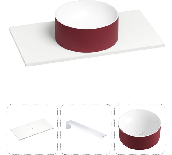 Раковина Wellsee Le.charme в наборе 3 в 1: подвесная раковина-столешница из камня 90 см (матовый пурпурно-красный/матовый белый цвет), с кронштейнами для подвесного монтажа 202005673