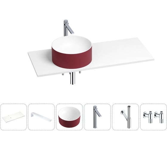 Раковина Wellsee Le.charme в наборе 6 в 1: раковина из камня с подвесной столешницей 100 см (цвет матовый пурпурно-красный/матовый белый), кронштейны, смеситель, сифон, вентили 202006599