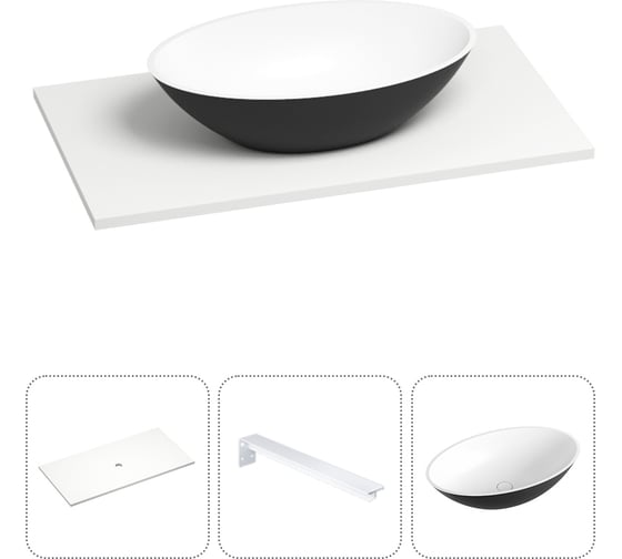 Раковина Wellsee Le.huit.mars в наборе 3 в 1: подвесная раковина-столешница из камня 80 см (матовый черный/матовый белый цвет), с кронштейнами для подвесного монтажа 202007015