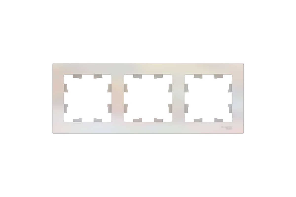 Рамка Systeme Electric (ранее Schneider Electric) серии AtlasDesign в цвете жемчуг трёхместная.