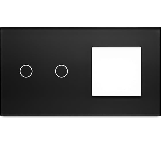 Рамка Vell для сенсорного выключателя с гнездом, черный, 2 поста, 2 кнопки + 1 гнездо, стекло, модуль, {BK2P-2G-GL} 1379099