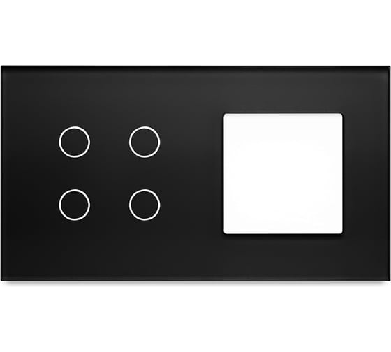 Рамка Vell для сенсорного выключателя с гнездом, черный, 2 поста, 4 кнопки + 1 гнездо, стекло, модуль, {BK2P-4G-GL} 1379107