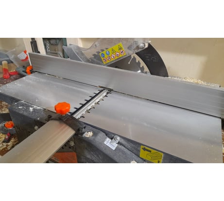 Диск, который в комплекте, надо менять. Ножи на рубанке быстро тупятся. Неудобный по креплению ограничитель толщины отреза.
