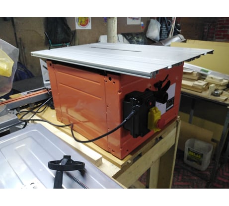 Итак, купил станок совсем недавно, но оценить его успел. Сразу отмечу, конструктор сего чуда должен быть похоронен в гробу сделанном с помощью его творения. А так как базово он будет пилить криво, косо, заклинивая диск, но благо кнопка срабатывает и защищает двигатель от выпуска белого дыма, то тело будет долго ждать в морге. Первое, это конечно параллельный упор, можно считать, что его нет, его нужно сразу выкинуть вместе с коробкой после покупки. Ну как такое можно вообще изобрести? Его жертва современного образования во сне увидела и после нарисовала? Потому сразу купил зажимную шину, так как колхозить самодельный упор времени нет, а шина многофункциональна. Второе, система аспирации, это отдельный и снова шедевр конструкторской мысли. Не пробовал подсоединять пылесос, но думаю он не поможет, забьется сразу, столько поворотов, и сечение. Однозначно это шедевр, потому сразу открутил боковую крышку кожуха. Третье. А как вообще менять пильный диск, через проктологическое отверстие? Что б это сделать, решил демонтировать боковую крышку, это можно в четвёртое сразу записать. По идее на ней есть отверстия под винты, и она бы легко снималась, но нет, какой то чудотворец её приварил, да еще с обоих сторон, болгарка помогла конечно. Благо, я сразу понял, никакими гарантийными обязательствами я пользоваться не стану, проживёт один фронт работ, буду считать, что чудесный аппарат за эти деньги. Конечно поменял диск и поставил для продольного пила, сразу стало лучше. Все эти расширения столов, это всё от лукавого, из них столик для рыбалки сделаю. Из плюсов, цена. Купил его где то за 13к. но вижу он много где стоит и по 25, и по 30. за такие деньги есть куда более достойные станки. За 13, попрёт. Достаточно мощный двигатель, доску 50ку пилит спокойно, с родным упором сразу пошло на косую пилить доску 25ку 3м длиной и заклинило диск, благо защита спасла, это тоже плюс. Станина в комплекте, это однозначно плюс. Теперь работу по продольному пилению "горбыля" сосны выполняет. Точность мне не важна, для других точных работ, у меня есть очень много лет бошевский станок, этот купил что б тем эти работы не делать. Ну вроде всё. Подведём итог, за 13к, пилить сосну, после доработок напильником, отличгая штука... :))
