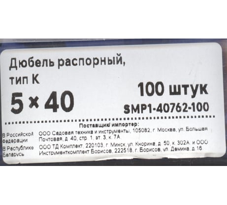 Вопросы и ответы о распорном дюбеле STARFIX 5x40 мм тип K 100 SMP1-40762-100