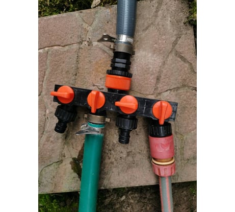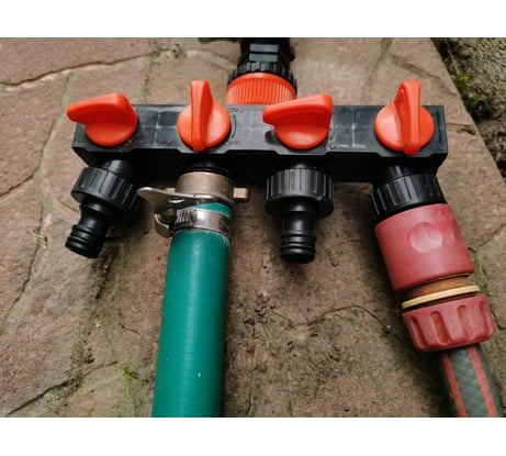Предназначен для соединения элементов поливочной системы с резьбовыми кранами и распределения на 4 линии полива.