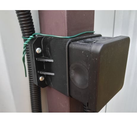 Не надо мучаться с прорезанием затычек, как на обычных коробках. Напечатал кронштейны на 3д принтере для крепления коробок к заборным столбам 60*60, развёл освещение по периметру участка.