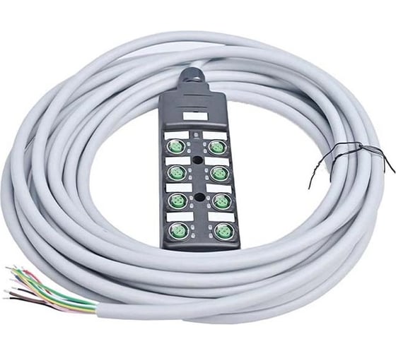 Распределительная коробка VELLEDQ M12-A3-8K5N-3.0PVC/GY разъем М12, портов 8, 5pin, NPN, кабель ПВХ серый 3м 08-00034450
