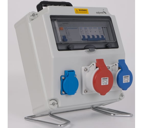 Распределительное устройство SAIPWELL SP-CZ-282815-005 артикул SPL06-08 предназначено для переносной коммутации электрооборудования на Schuko и CEE разъёмах, а также для защиты и коммутации питания подключенных потребителей на вилке Schuko и CEE.