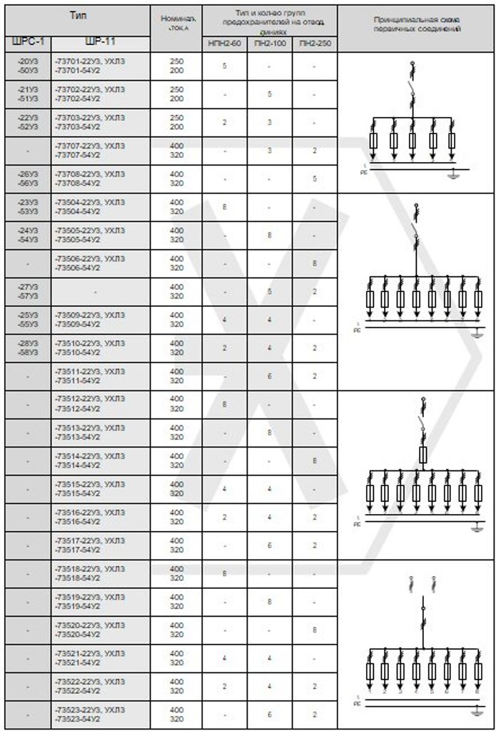 Технические характеристики ГК ЭЛЕКТРОСПЕКТР ШР11-73517 IP54 400А 6х100А, 2х250А _VSHR517
