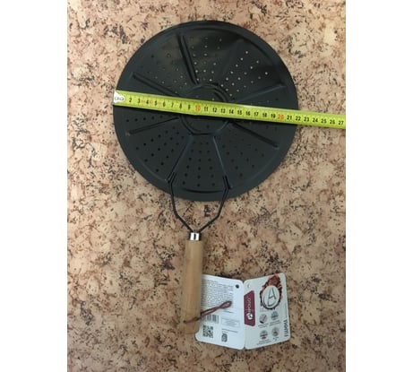 Сделан из очень тонкого металла. Ручка не сьемная. При перврм же использовании изделие деформировалось по центру и стоящая на ней сковородка оказалась неустойчивой. Приходится выравнивать поверхность рассекателя после каждого использования