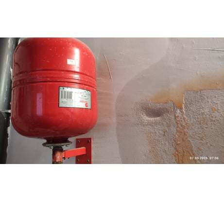 Хороший бак. Был накачан 2.6бара. Спустил воздух с него и протянул болты фланца мембраны. Были два откручены. Ниппель нежный, может пропускать в определенных положениях. Проверяйте на герметичность перед установкой. Ножек нет!!