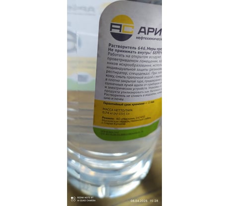 Отзывы о растворителе Р-646 АРИКОН ГОСТ 18188-2020, бутылка ПЭТ 1 л RAS6461