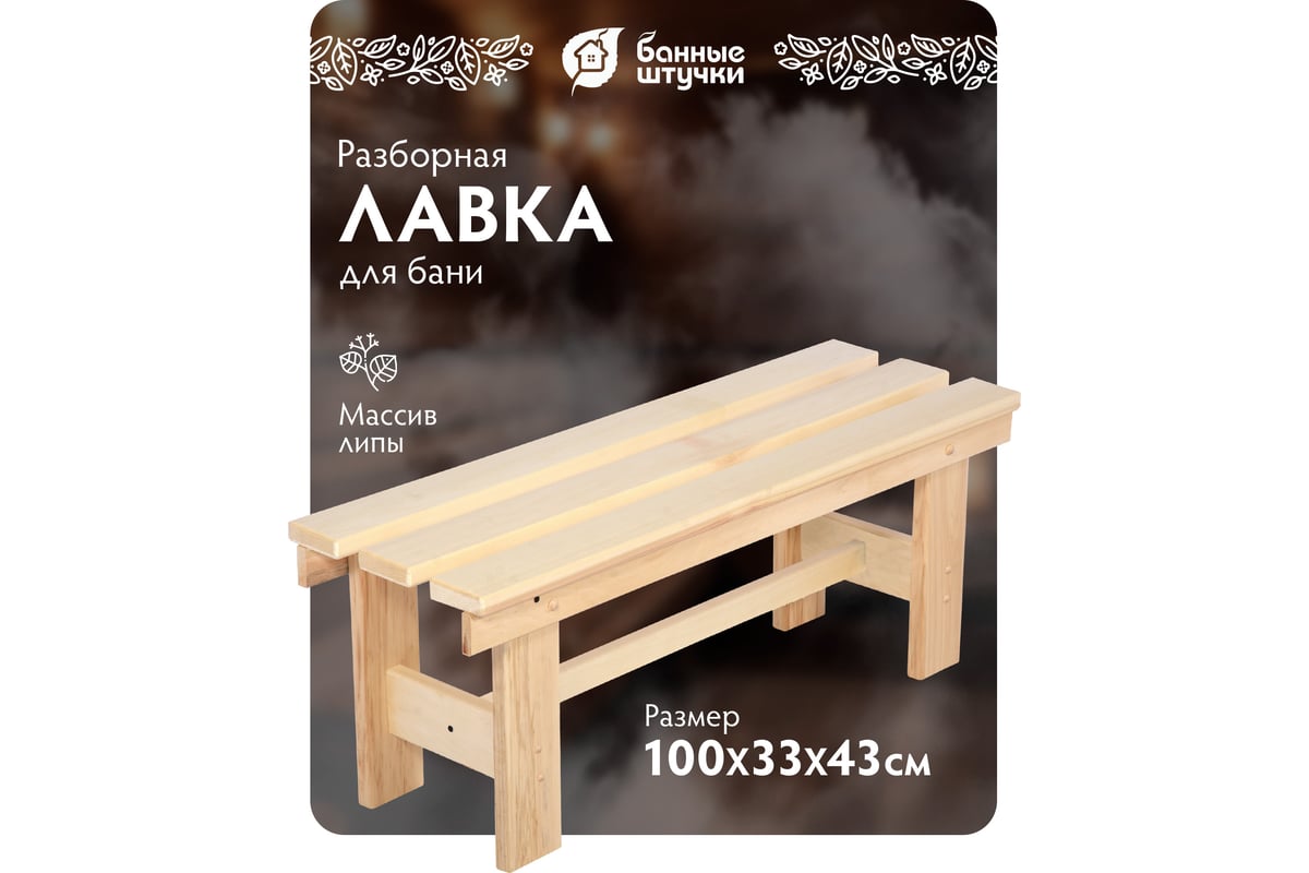 Разборная лавочка Банные штучки 100х33х43 см липа 03600