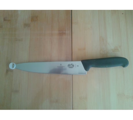 Отличный шефский нож произведённый швейцарской фирмой. Профессиональная серия шефских ножей. Рукоять фиброкс, мягкий, очень комфортный для руки пластик.