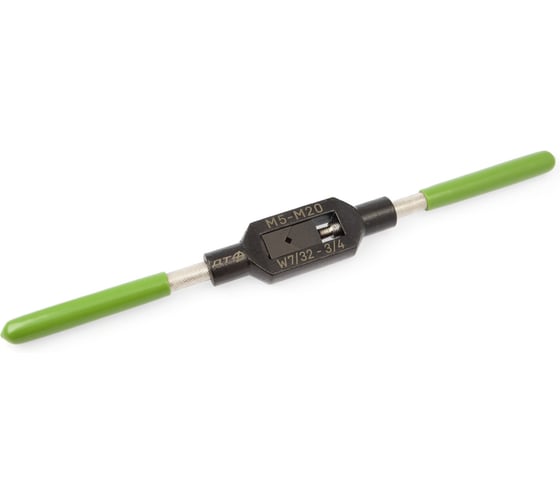 Раздвижной метчикодержатель предназначен для фиксации и вращения ручного метчика при нарезании резьбы. Рассчитан на работу с метчиками разного диаметра. Корпус из стали гарантирует высокий ресурс работы. Накатка по всей длине рукояток и дополнительная ПВХ обливка обеспечивают надёжность хвата, а разборная конструкция – удобство хранения.