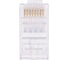 Штекер выполнен из прозрачного качественного пластика и имеет 8 посадочных мест с 8 ножами-контактами, покрытыми техническим золотом толщиной 3 мкм для улучшения пропускной способности разъёма.