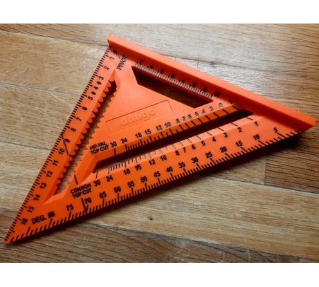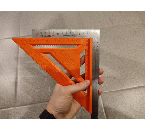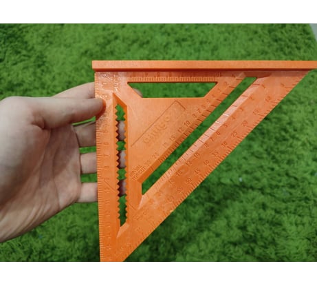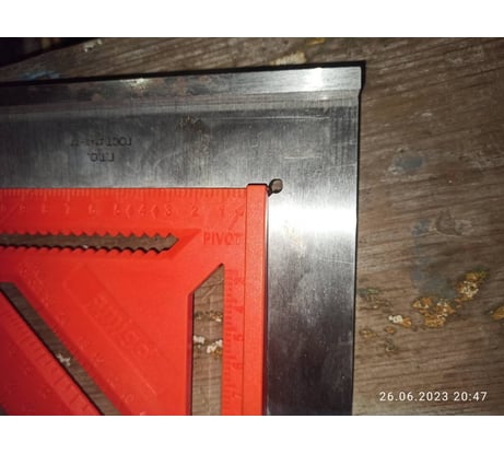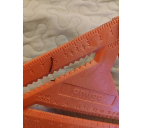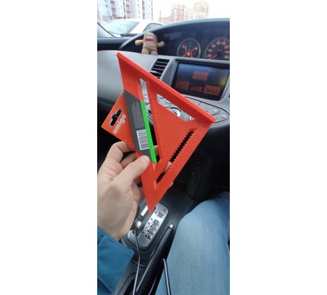 легкий, удобный угольник. хорошо скользит по поверхностям, есть полезные выемки для карандаша - чтобы чертить линию на одном расстоянии от края