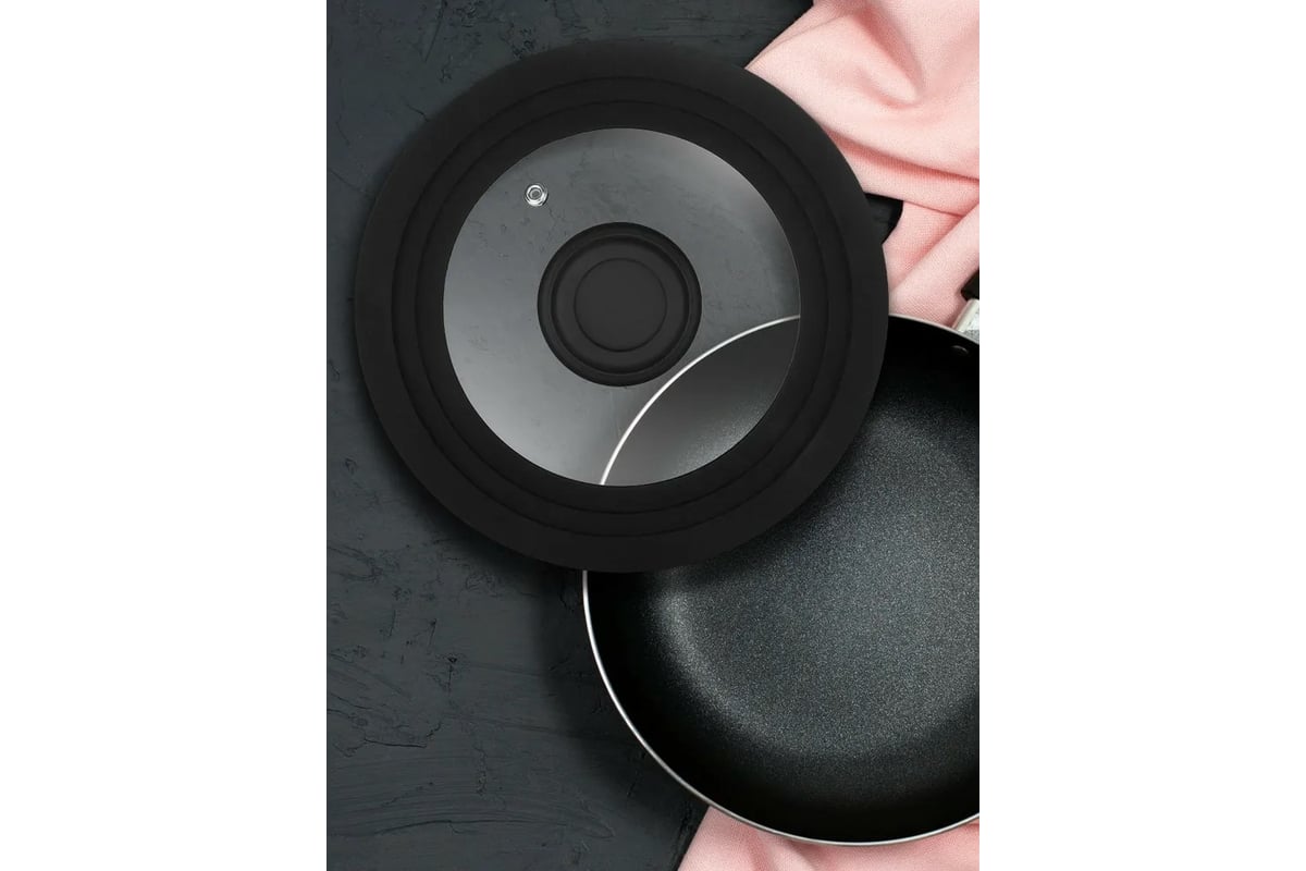 Мягкий силикон заполняет зазор между крышкой и сковородой. Поэтому крышка плотно прилегает к краям посуды, помогает сохранить тепло и избежать разбрызгивания жидкости.