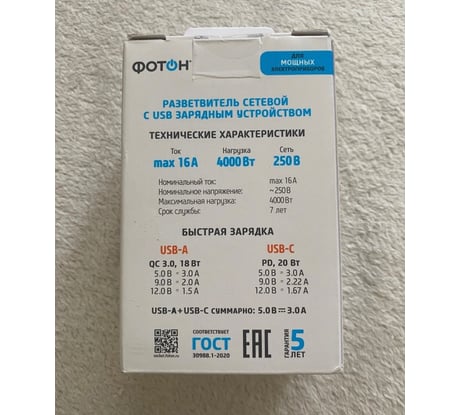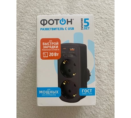 Разветвитель сетевой ФОТОН с двумя разъёмами USB (Type-A, Type-C) и быстрой зарядкой — идеальное решение для тех, кто ценит порядок и экономию времени.