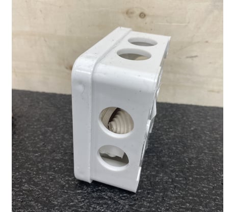 Коробка поставляется с одной колодкой, соединяющей провода попарно. Креплений в комплекте нет, только саморезы на крышке. Из-за отсутствия какой-либо упаковки, коробки приходят в потёртостях и царапинах. Пластик напоминает советский.