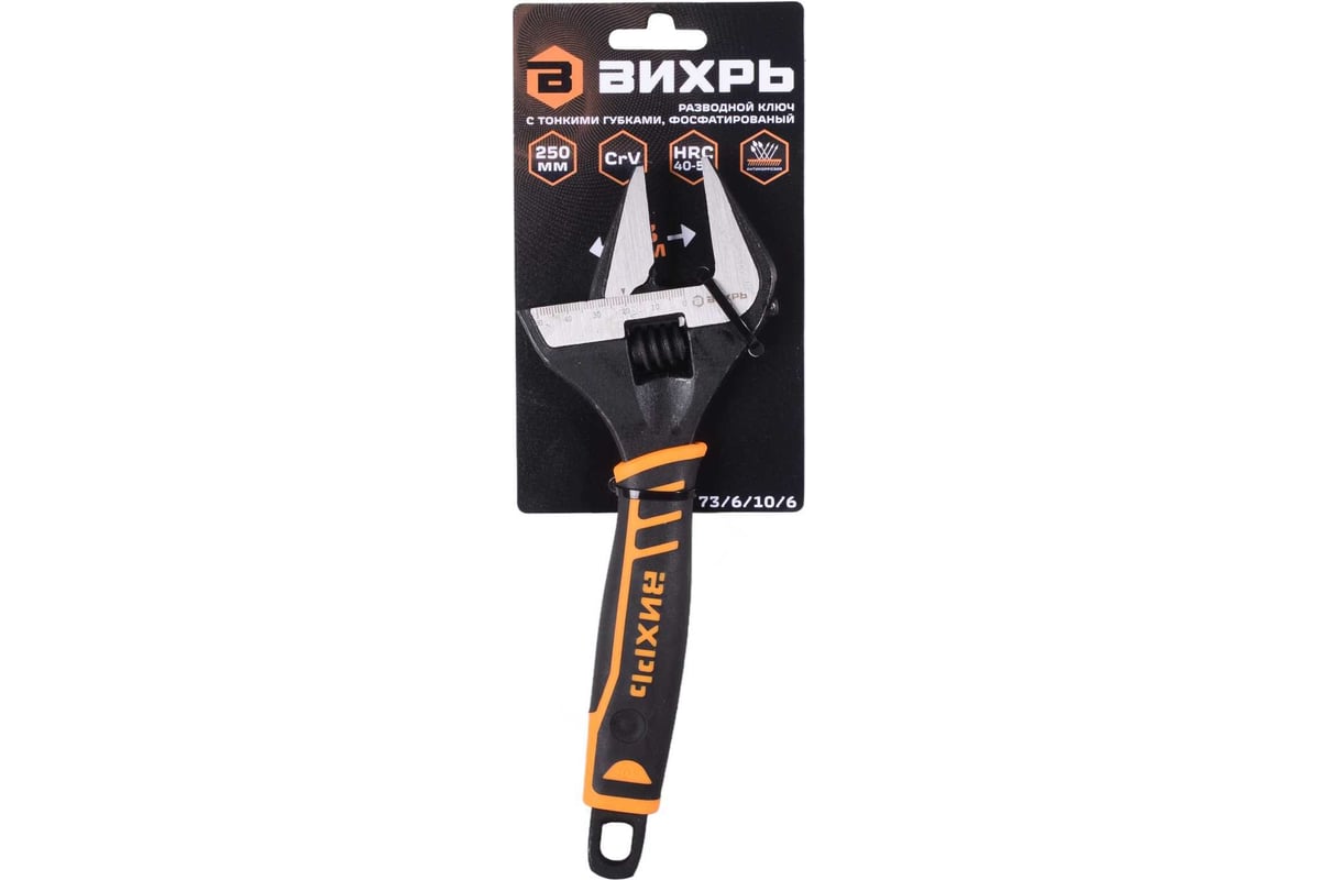 Разводной ключ Вихрь с тонкими губками, фосфатированый, 250 мм, 73/6/10/6