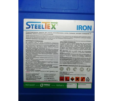 Реагент для промывки теплообменников SteelTEX IRON 2021010010 предназначен для очистки внутренней поверхности инженерных систем от ржавчины, накипи, шлама, известкового налета и прочих вредных отложений.