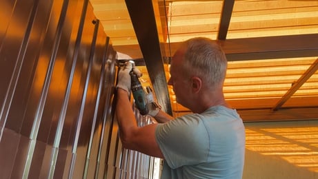 Привернули профлист длина участка 7 м одному перевернуть не получится мы крутили с супругой вместе она управляла шуруповертом я нажимал на редуктор, кровельный саморез заворачиваться секунд за 30 в профильную трубу толщиною 2 мм, к покупке рекомендую.