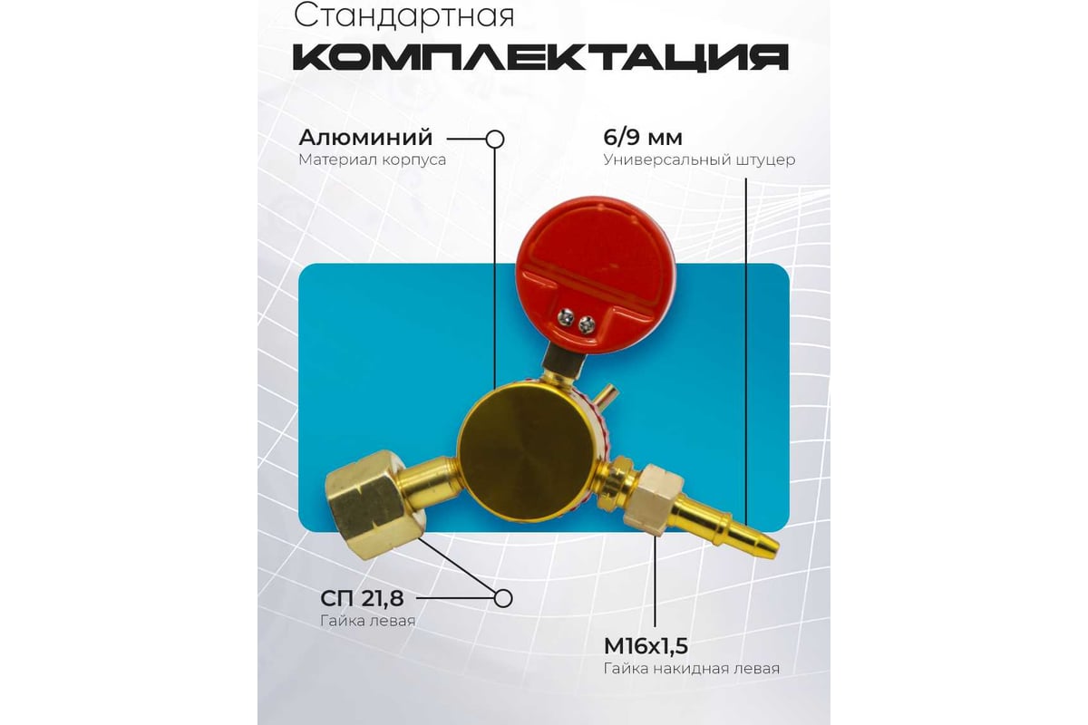 - Универсальный штуцер 6/9 мм позволяет использовать газовые рукава любого диаметра без дополнительных переходников