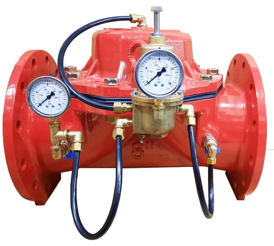 Клапан снижает давление в системе «после себя» и поддерживает установленное значение не зависимо от колебаний давления на входе и изменений расхода. В качестве запорного элемента используется резиновая мембрана (диафрагма). Для стабильного поддержания заданного значения давления требуется постоянный проток жидкости (постоянный расход среды).
