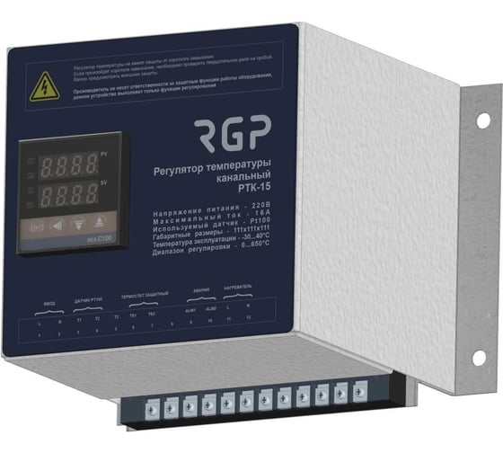 Регуляторы температуры типа РТК управляют электрическими нагревателями мощностью 3,5 кВт (максимальный рабочий ток 15А) и осуществляют регулировку его мощности изменением угла (фазы) открытия тиристора в твердотельном реле с помощью ШИМ регулятора.