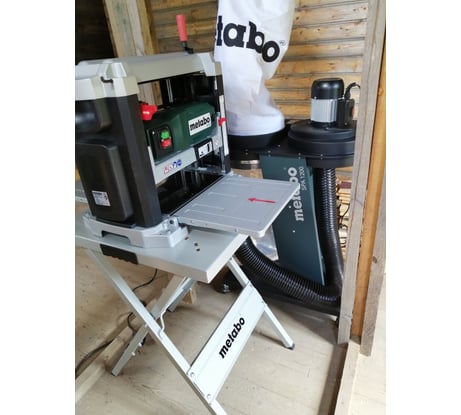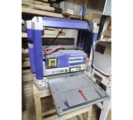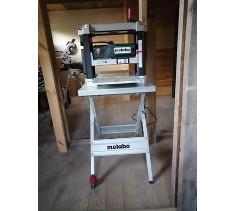 Рейсмусом Metabo DH330 очень доволен, в использовании более 2х лет, установил сразу из коробки, только проверил затяжку ножей - на одной станине с торцовочной пилой и все в одной плоскости, так чтобы использовать валки станины. Таким образом, начало строгания получается ровным, без ступеньки и при нешироких досках пилу со станины можно и не снимать. Работаю в основном с твердыми породами дерева. При работе с хвойными слежу, чтобы не было сильно смолистого материала.
