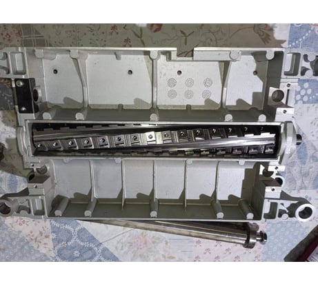 Ножи прижимается к валу пластиной из г... Сыромятины какой - то, в итоге Винты вкручиваешь практически до срыва, а пол нож мгновенно набивается стружка и всё, плоскости строгания нет. ... Ну это конечно не сразу, сначала папу лет трогал более менее неплохо, правда не часто. .... Отвратительно оформлен отвод стружки.
