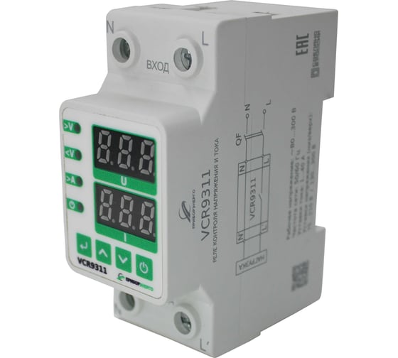 Микропроцессорное устройство реле контроля напряжения и тока VCR9311 предназначено для отключения однофазной нагрузки при выходе сетевого напряжения/тока за установленные пределы с последующим автоматическим повторным включением после восстановления параметров сети. Устройство отображает текущее напряжение (V) и ток (A), а также обеспечивает защиту от перенапряжения, пониженного напряжения и перегрузки по току.